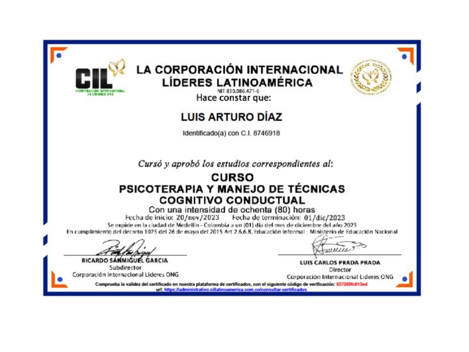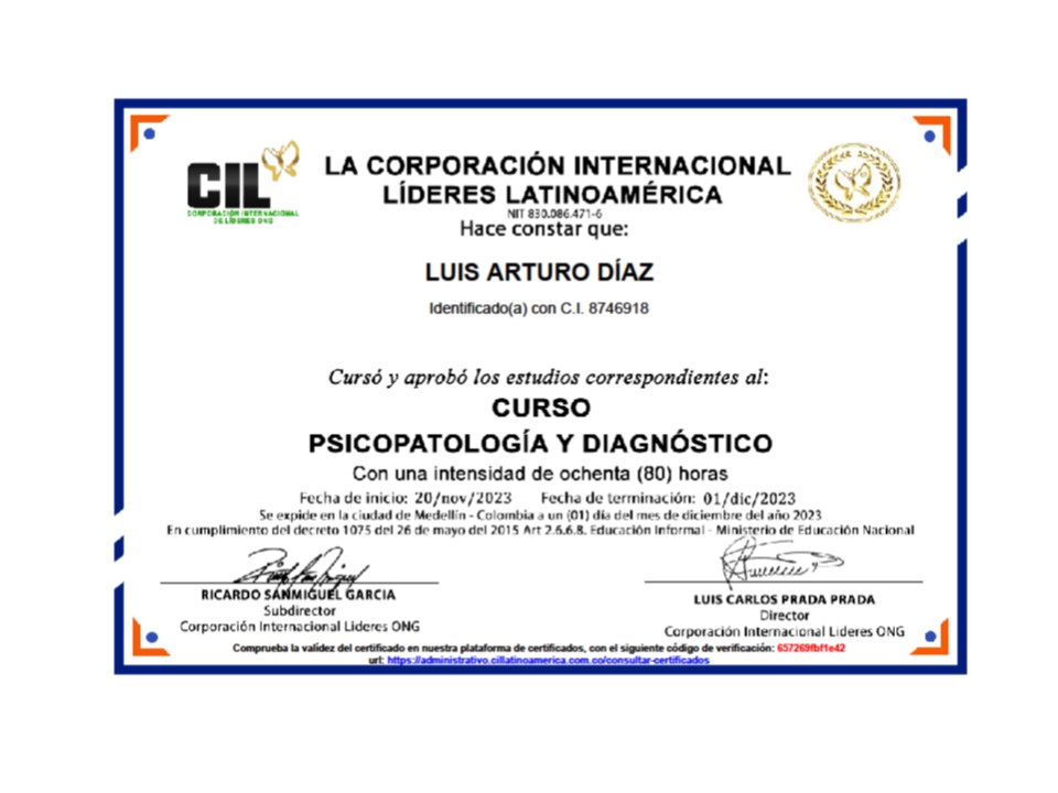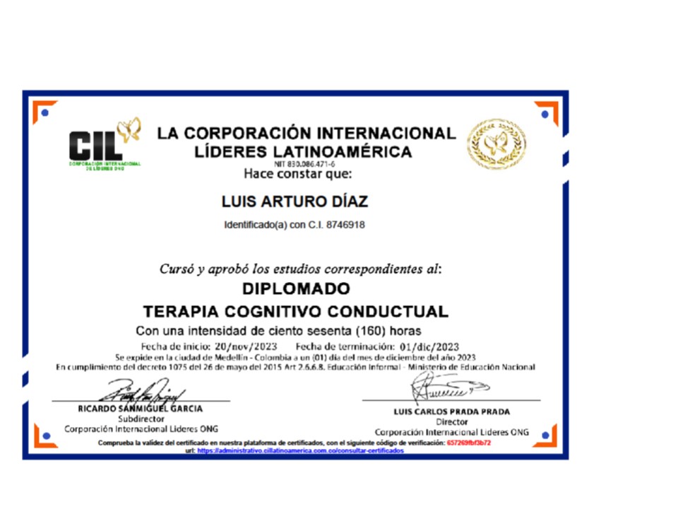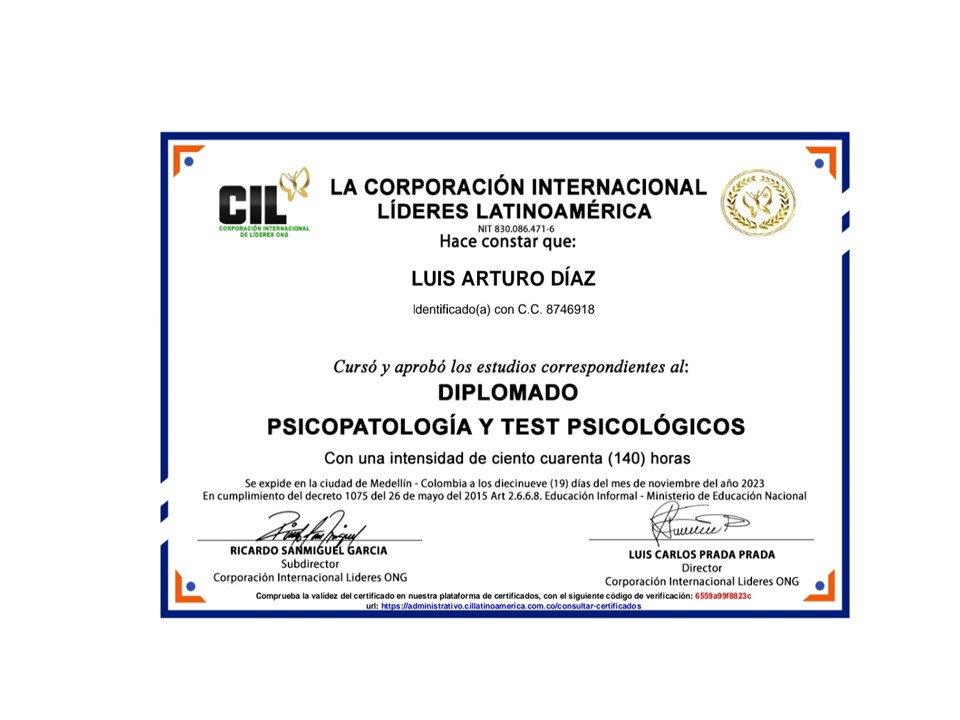 se mite vía online con la evaluación a través de un a formulario adjunto por el especialista Luis Diaz quien cuenta con una experiencia de 40 años en Salud mental.